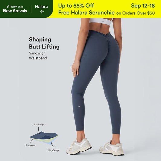 Halara Ultrasculpt Socinched High Waisted Tummy Control Butt Lifting Ruched Side Pocket Shaping Yoga Leggings